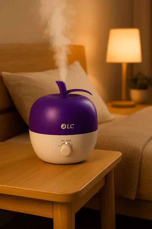 DLC Fawahah Humidifier – A stylish apple-shaped humidifier with colorful gradient lighting, designed to improve air quality, add moisture, and create a relaxing atmosphere.