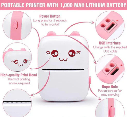 Multifunctional thermal printer, support photo printing, label printing, card printing, document printing, web printing, perfect for study or daily work.
